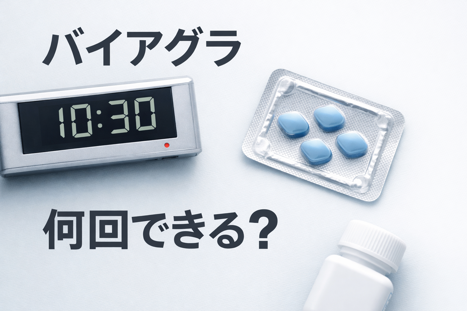 バイアグラを服用した場合、「何回できるか」は個人差があります。例えば若い人で体力がある場合は、時間を空ければ2回目が可能なケースもあります。一方で、年齢や体調によっては1回だけという人も珍しくありません。